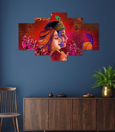 Radhe Krishna Set of Five 3D Framed Paintings for Wall Decoration – Ideal for Home, Living Room, and Bedroom (75 x 43 CM)