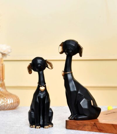 Black Golden Set of 2 Cute Dog Statues Animal Figurines Decorative Showpieces for Home Decor in Living Room, Office, Pet Lovers’ Spaces – Gift for Dog Enthusiasts on Birthday, Housewarming