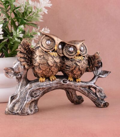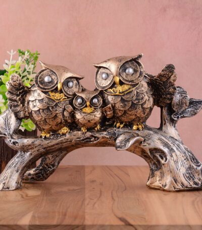 Owl Family Sitting on Tree Decorative Bird Showpieces Statue for Home Decor Living Room Bedroom Wall Shelf Table Top Garden Decoration Items -1
