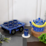 HandPainted Alluminium Tea Kettle with 6 Glasses and Wooden Tray For Home Decor , Tea Party , Serving