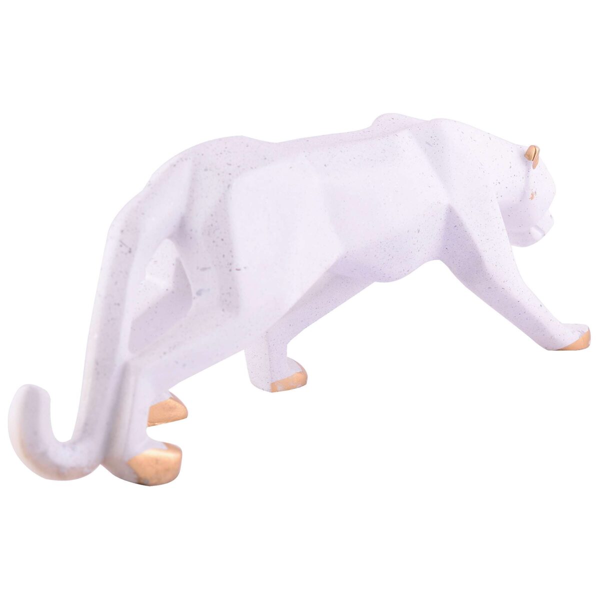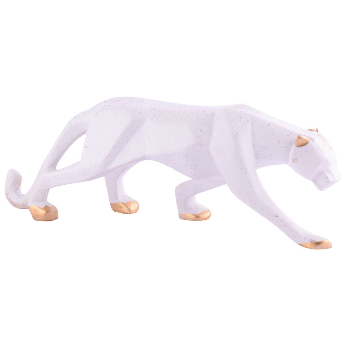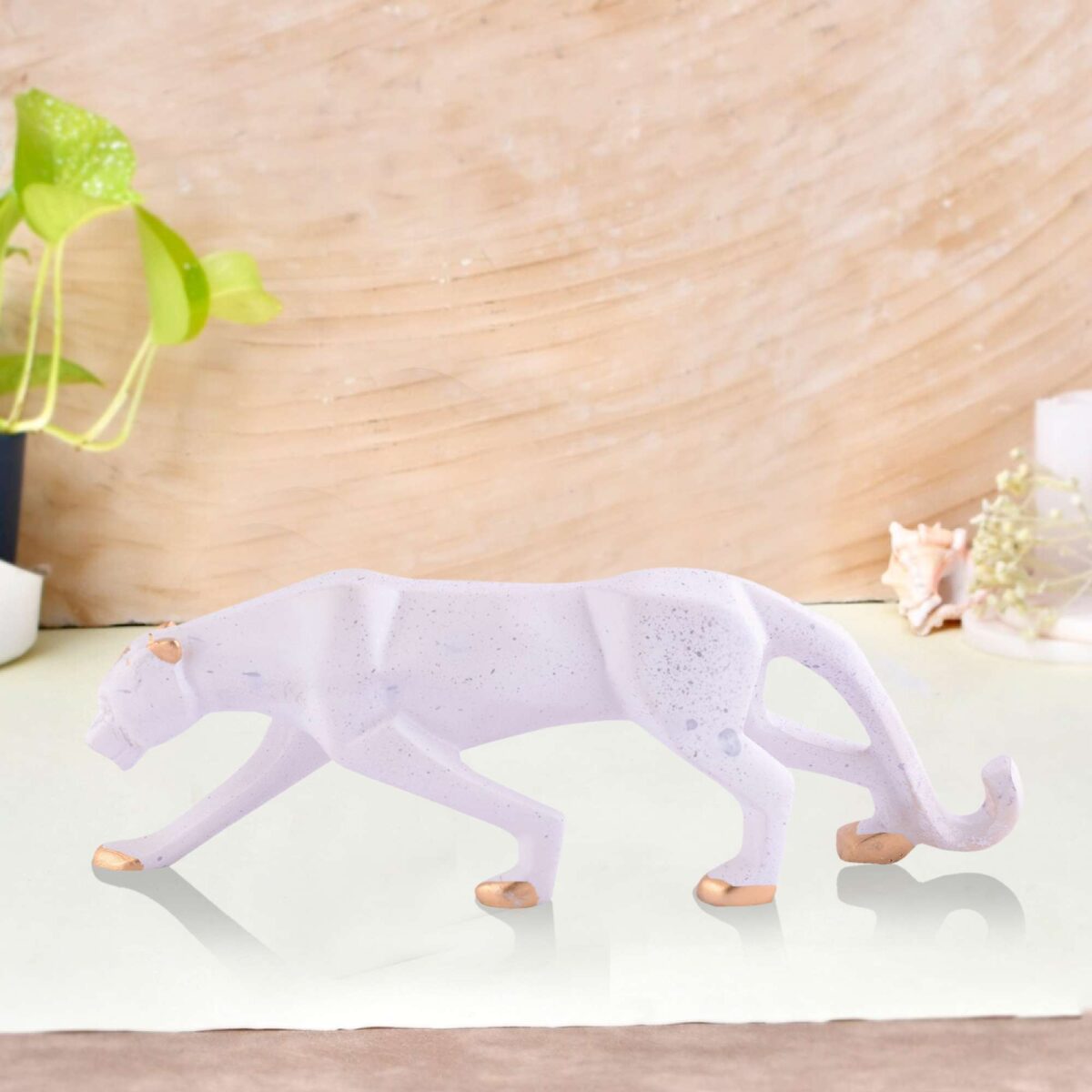 White Panther Standing Position Animal Showpiece Antique Sculpture for Home Decor Showpiece Figurine