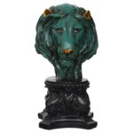 Handmade Lion Head Statue Stone Finish Animal Figurines Gifts Antique Design for Home Decoration (green)