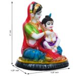 This beautiful hand-painted marble statue depicts Yashoda, the foster mother of the Hindu god Krishna, cradling him in her arms. Krishna is a central figure in Hinduism, and Yashoda is revered for her love and care for him. The statue is 9 inches tall and would be a perfect addition to your home or office, or as a gift for a follower of Hinduism.