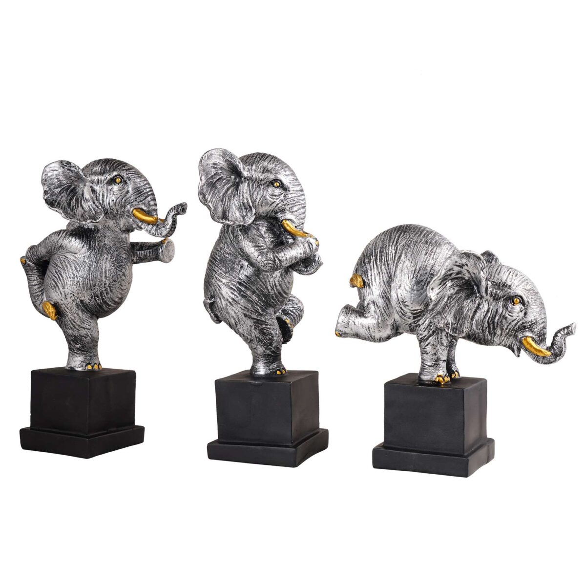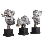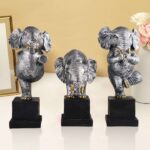 Polyresin Elephant Showpiece Statue and Artifacts for Home Decor, Living Room, Table Decoration for Gifting, Interiors and Diwali Decoration Silver (Set Of 3)