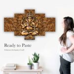 GANESH Set of Five 3D Framed Paintings for Wall Decoration – Ideal for Home, Living Room, and Bedroom (75 x 43 CM)