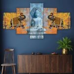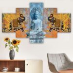 Buddha Set of Five 3D Framed Paintings for Wall Decoration – Ideal for Home, Living Room, and Bedroom (75 x 43 CM)