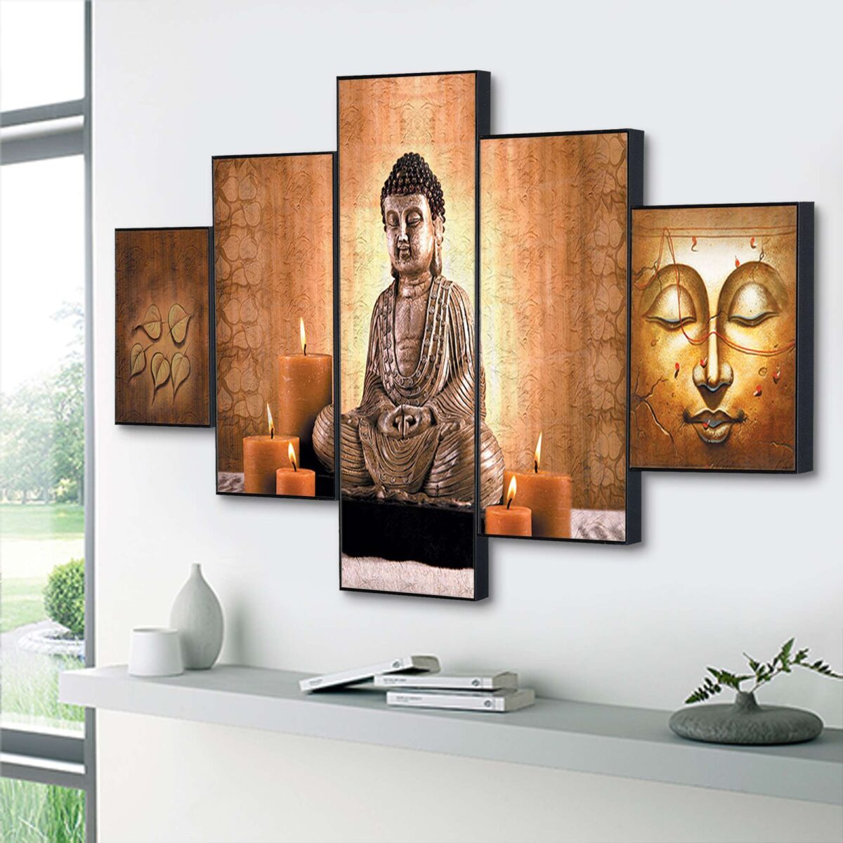 Saumic Craft Presents This Set Of 5 Amazing Paintings For Your Wall . The Painting Will Completely Change The Atmosphere Of The Room Whire It is Placed . The Paintimg Is Made On Heavy Wooden Board And Has A Digital UV Coating On It Which MAKES It Very Easy To Clean . Pricing Of The Product Is Made Very Reasonable From Our Brand As Per The Quality We Are Providing To Our Customers, We Assure That You Will Not Regret Your Purchase, Saumic Craft Is Well Known for Its After Sale Services And In Case If You Feel Some Problem With Any Of Our Product Than You Can Replace It For Free With No Additional Cost . This painting offers a stylish look to your wall as this piece includes three themes it is vastu and also have the essence of abstract and modern art which makes this peice unique and stylish . The 5 pieces wall painting is made with high-quality material, the HD quality print looks fantastic and bright it will not fade easily. With just few simple steps you can mount it to the wall. Thank You For Yor Purchase