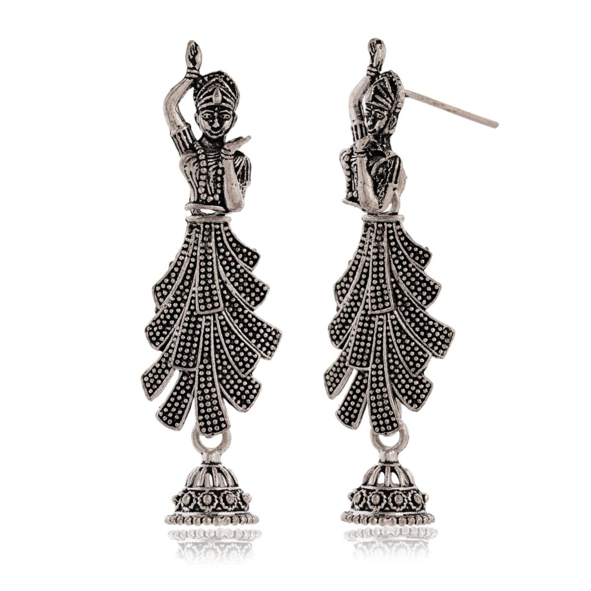 Women’s Indian Traditional AZ838-OXidised Silver Earrings For Women | Butterfly Design Jumki Wedding Wear