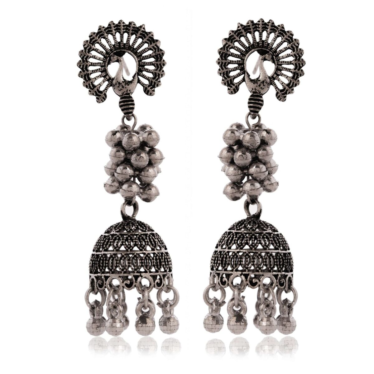 Women’s Indian Traditional AZ838-OXidised Silver Earrings For Women | Butterfly Design Jumki Wedding Wear